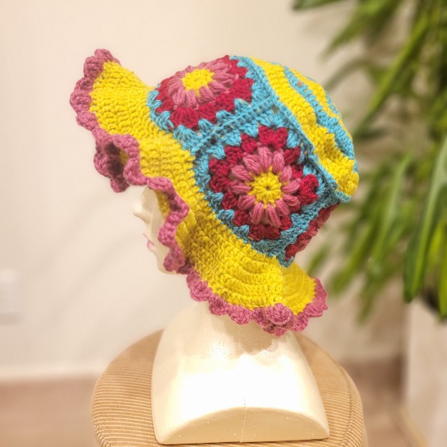 カラフルなモチーフ編みのニット帽 | バケットハット 帽子 トロピカル