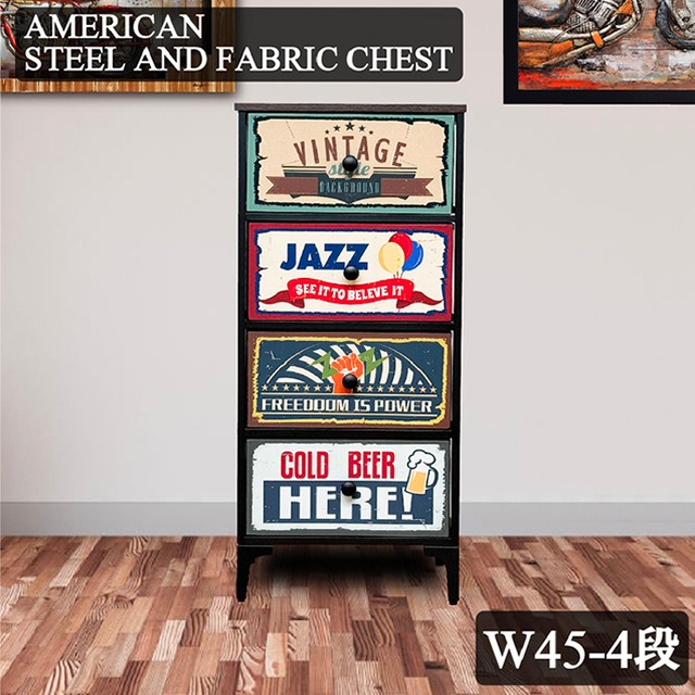 アメリカン スチール ファブリック チェスト(小)|W45×D30×H98.5cm