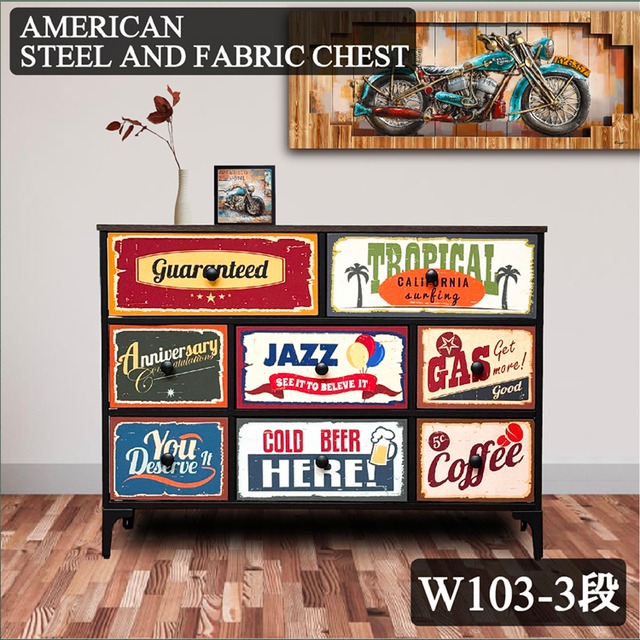 アメリカン スチール ファブリック チェスト(中)|W102.5×D30×H77cm