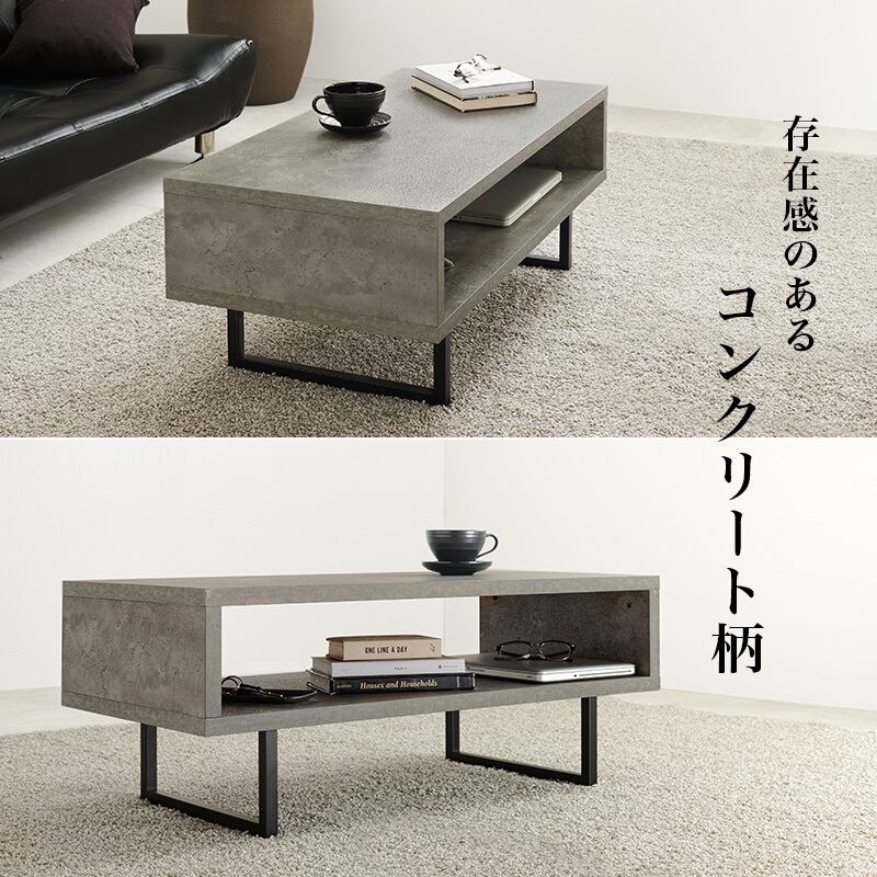 コンクリート柄の天板センターテーブル ローテーブル|グレー ブラックスチール