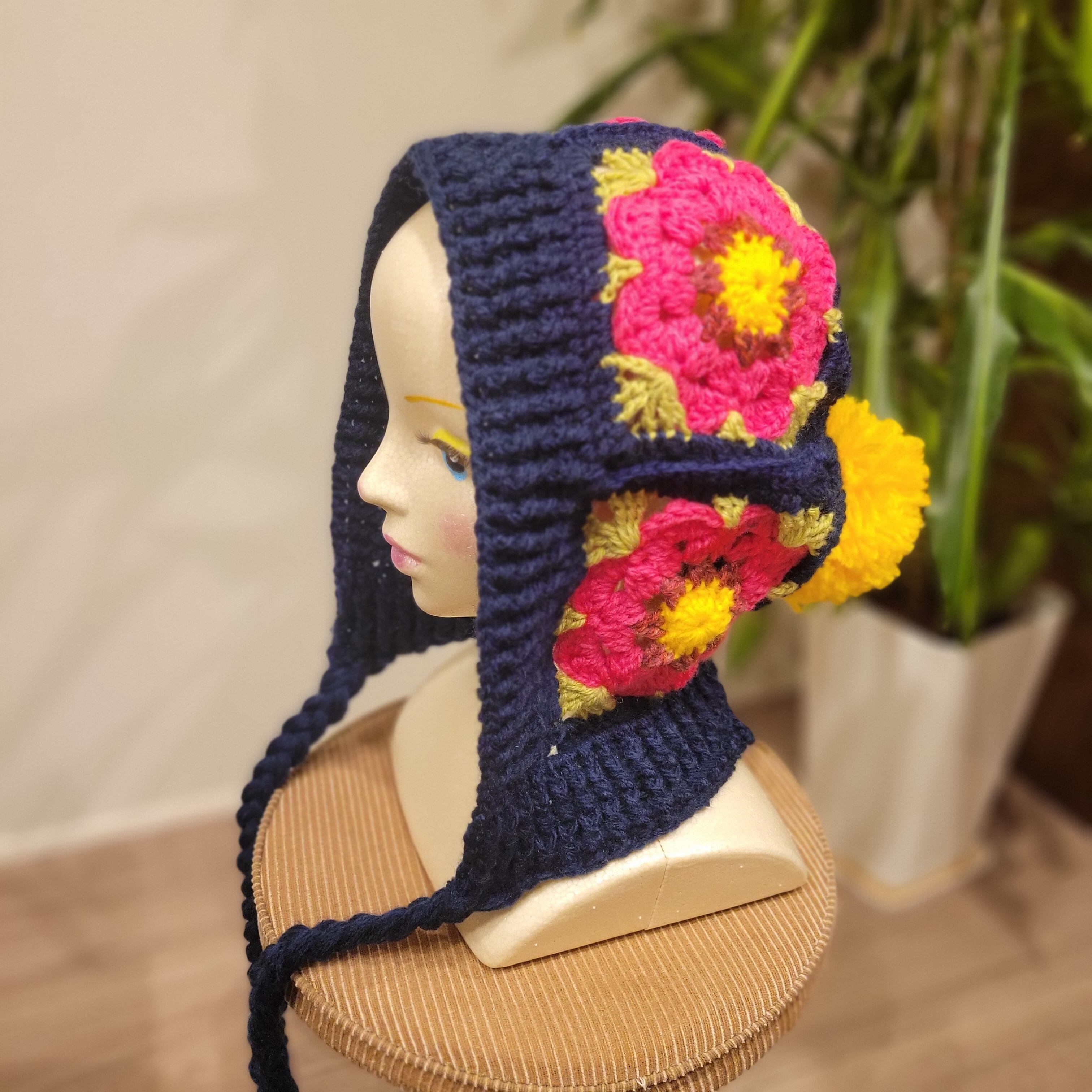 1点1点手編みで編んだ、レトロでかわいい
